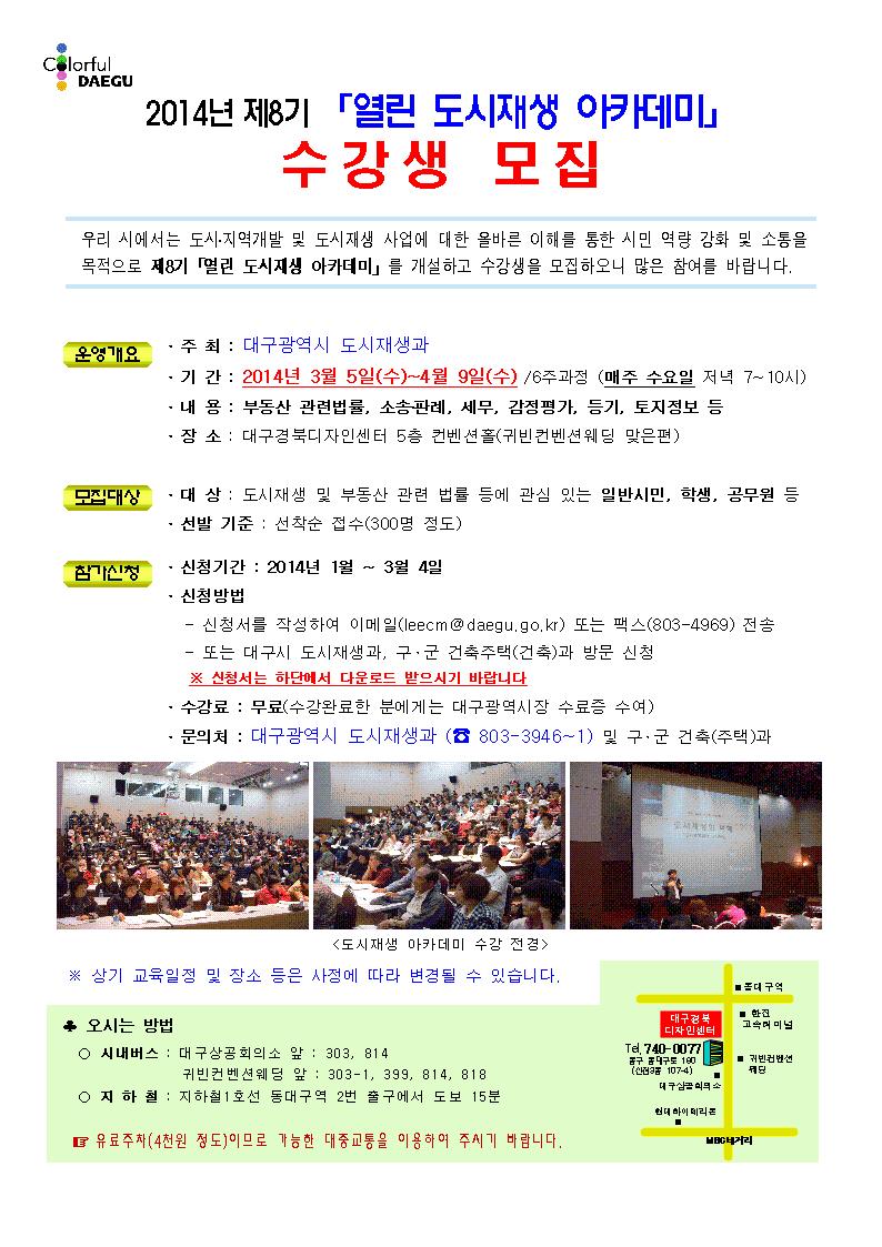 제8기 열린 도시재생 아카데미 수강생 모집
